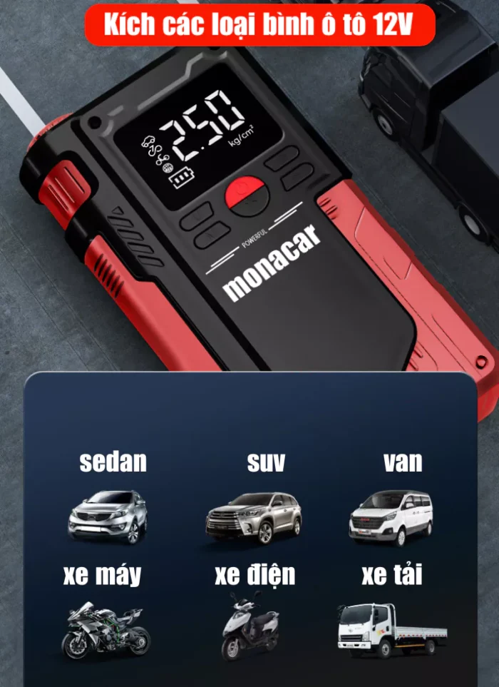 Kích bình ô tô 12v, bơm lốp đa năng 4in1 monacar 14000mah, Bảo hành 12 tháng 1 đổi 1